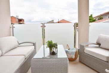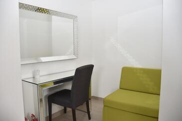 Appartamento può accogliere 4 ospiti. I letti sono disposti nelle camere da letto che sono 2, su 57m2. Gli ospiti hanno a disposizione il proprio terrazzo per godere nelle calde serate estive. Si può preparare il cibo utilizzando il barbecue comune.