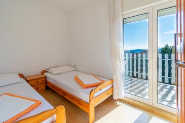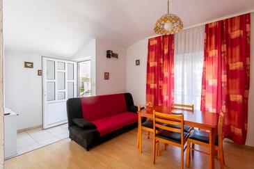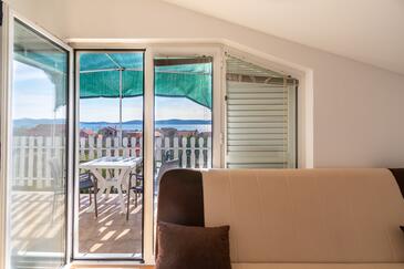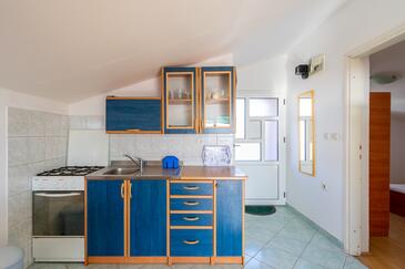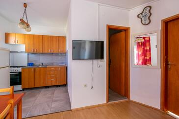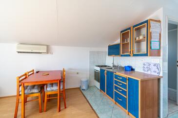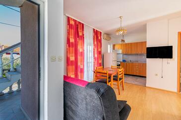 Appartamento può accogliere 5 ospiti. I letti sono disposti nelle camere da letto che sono 2, e nella sala da pranzo, su 38m2. Gli ospiti hanno a disposizione il proprio terrazzo per godere nelle calde serate estive. Dall'appartamento si gode di una vista sul mare. Si può preparare il cibo utilizzando il barbecue comune.
