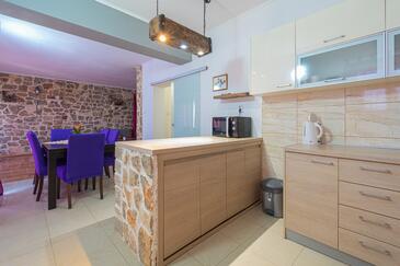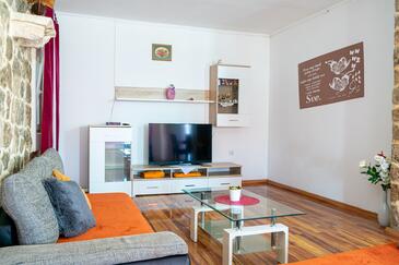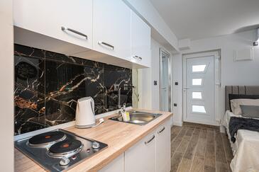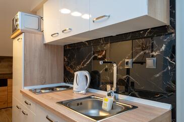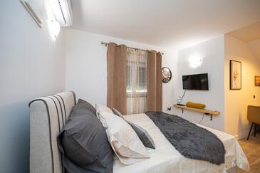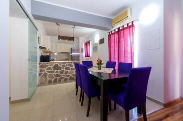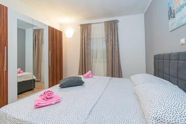 Appartamento può accogliere 7 ospiti. I letti sono disposti nelle camere da letto che sono 3, e nella camera di soggiorno, su 91m2. Gli ospiti hanno a disposizione il proprio terrazzo per godere nelle calde serate estive. Dall'appartamento si gode di una vista sul mare. Si può preparare il cibo utilizzando il barbecue comune.