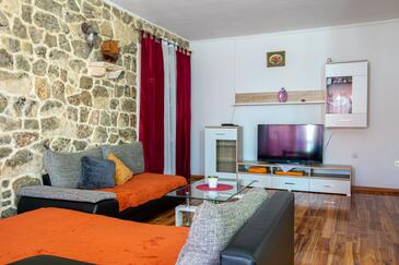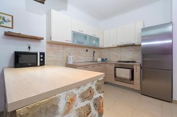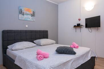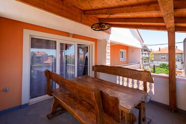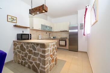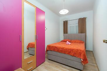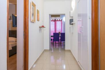 Appartamento può accogliere 7 ospiti. I letti sono disposti nelle camere da letto che sono 3, e nella camera di soggiorno, su 91m2. Gli ospiti hanno a disposizione il proprio terrazzo per godere nelle calde serate estive. Dall'appartamento si gode di una vista sul mare. Si può preparare il cibo utilizzando il barbecue comune.