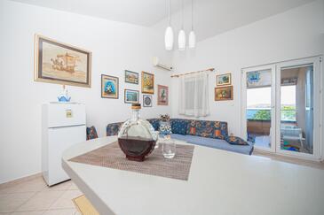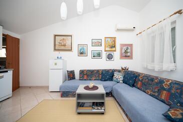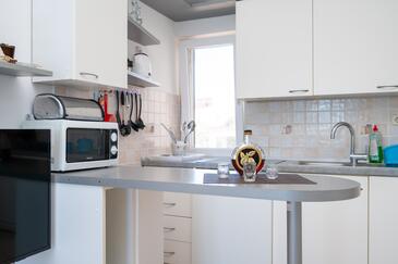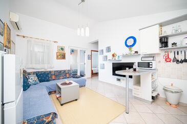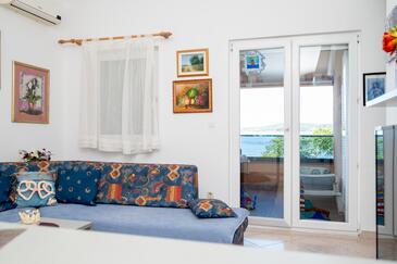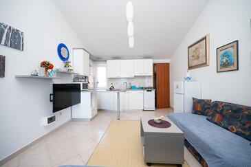 Appartamento può accogliere 5 ospiti. I letti sono disposti nelle camere da letto che sono 2, e nella camera di soggiorno, su 43m2. Gli ospiti hanno a disposizione il proprio terrazzo per godere nelle calde serate estive. Dall'appartamento si gode di una vista sul mare. Si può preparare il cibo utilizzando il barbecue comune.