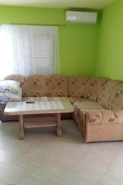 Appartamento può accogliere 8 ospiti. I letti sono disposti nelle camere da letto che sono 3, e nella camera di soggiorno, su 80m2. Gli ospiti hanno a disposizione il proprio terrazzo per godere nelle calde serate estive. Dall'appartamento si gode di una vista sul mare. Si può preparare il cibo utilizzando il barbecue comune.