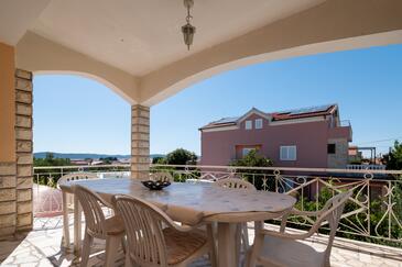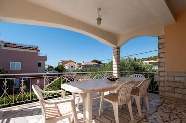 Appartamento può accogliere 6 ospiti. I letti sono disposti nelle camere da letto che sono 3, su 92m2. Gli ospiti hanno a disposizione il proprio terrazzo per godere nelle calde serate estive. Dall'appartamento si gode di una vista sul mare. Si può preparare il cibo utilizzando il barbecue comune.