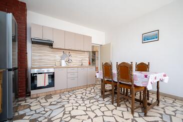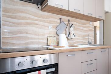 Appartamento può accogliere 6 ospiti. I letti sono disposti nelle camere da letto che sono 3, su 92m2. Gli ospiti hanno a disposizione il proprio terrazzo per godere nelle calde serate estive. Dall'appartamento si gode di una vista sul mare. Si può preparare il cibo utilizzando il barbecue comune.