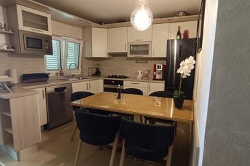 Appartamento può accogliere 7 ospiti. I letti sono disposti nelle camere da letto che sono 3, e nella camera di soggiorno, su 78m2. Gli ospiti hanno a disposizione il proprio terrazzo per godere nelle calde serate estive. Dall'appartamento si gode di una vista sul mare. Per il piacere totale e il relax c'è il barbecue privato solo per gli ospiti di quest'alloggio.