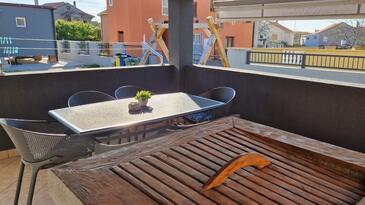 Appartamento può accogliere 5 ospiti. I letti sono disposti nelle camere da letto che sono 2, su 63m2. Gli ospiti hanno a disposizione il proprio terrazzo per godere nelle calde serate estive. Si può preparare il cibo utilizzando il barbecue comune.