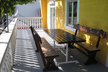 Appartamento può accogliere 6 ospiti. I letti sono disposti nelle camere da letto che sono 3, su 84m2. Gli ospiti hanno a disposizione il proprio terrazzo per godere nelle calde serate estive. Si può preparare il cibo utilizzando il barbecue comune. Nell'unità di alloggio si possono portare gli animali domestici con un pagamento supplementare.