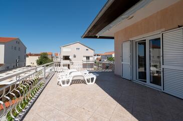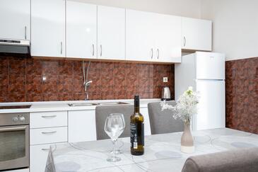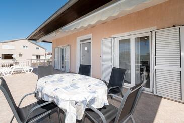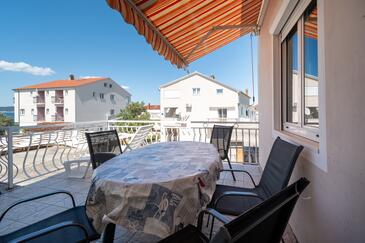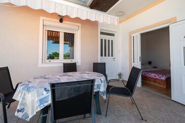 Appartamento può accogliere 6 ospiti. I letti sono disposti nelle camere da letto che sono 2, su 57m2. Gli ospiti hanno a disposizione il proprio terrazzo per godere nelle calde serate estive. Dall'appartamento si gode di una vista sul mare. Si può preparare il cibo utilizzando il barbecue comune.