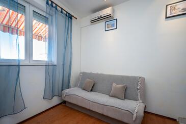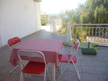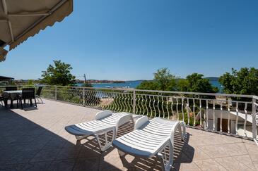 Appartamento può accogliere 6 ospiti. I letti sono disposti nelle camere da letto che sono 2, su 57m2. Gli ospiti hanno a disposizione il proprio terrazzo per godere nelle calde serate estive. Dall'appartamento si gode di una vista sul mare. Si può preparare il cibo utilizzando il barbecue comune.