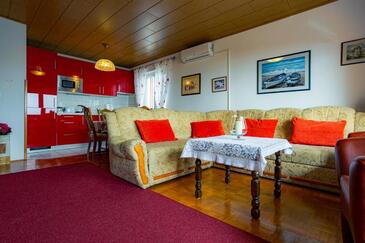 Appartamento può accogliere 5 ospiti. I letti sono disposti nelle camere da letto che sono 2, e nella camera di soggiorno, su 54m2. Gli ospiti hanno a disposizione il proprio terrazzo per godere nelle calde serate estive. Dall'appartamento si gode di una vista sul mare. Si può preparare il cibo utilizzando il barbecue comune.