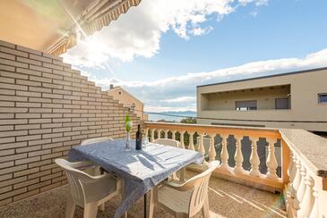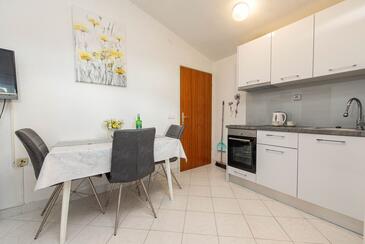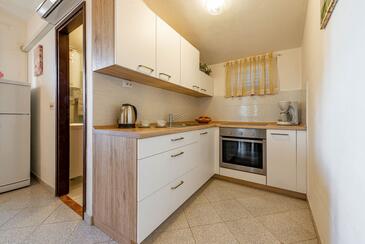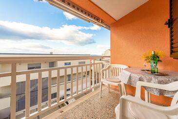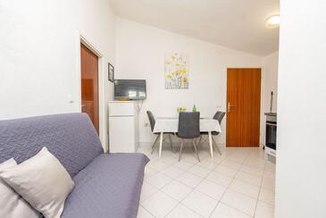 Appartamento può accogliere 5 ospiti. I letti sono disposti nelle camere da letto che sono 2, e nella sala da pranzo, su 41m2. Gli ospiti hanno a disposizione il proprio terrazzo per godere nelle calde serate estive. Dall'appartamento si gode di una vista sul mare. Si può preparare il cibo utilizzando il barbecue comune.
