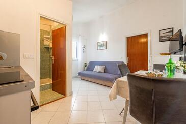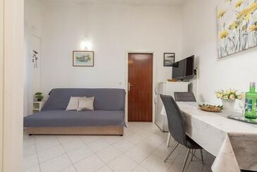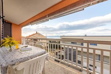 Appartamento può accogliere 5 ospiti. I letti sono disposti nelle camere da letto che sono 2, e nella sala da pranzo, su 41m2. Gli ospiti hanno a disposizione il proprio terrazzo per godere nelle calde serate estive. Dall'appartamento si gode di una vista sul mare. Si può preparare il cibo utilizzando il barbecue comune.