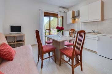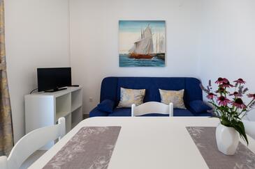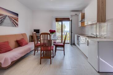Appartamento può accogliere 3 ospiti. I letti sono disposti nelle camere da letto che sono 1, e nella camera di soggiorno, su 33m2. Gli ospiti hanno a disposizione il proprio balcone per godere delle calde serate estive. Dall'appartamento si gode di una vista sul mare. Si può preparare il cibo utilizzando il barbecue comune. Nell'unità di alloggio si possono portare gli animali domestici con un pagamento supplementare.