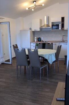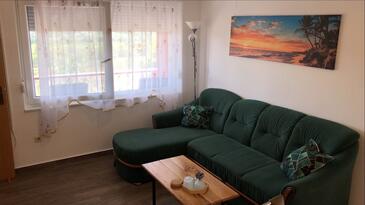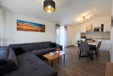 Appartamento può accogliere 6 ospiti. I letti sono disposti nelle camere da letto che sono 3, su 77m2. Gli ospiti hanno a disposizione il proprio terrazzo per godere nelle calde serate estive. Dall'appartamento si gode di una vista sul mare. Si può preparare il cibo utilizzando il barbecue comune. Durante il soggiorno gli ospiti si possono rilassare nella piscina privata.