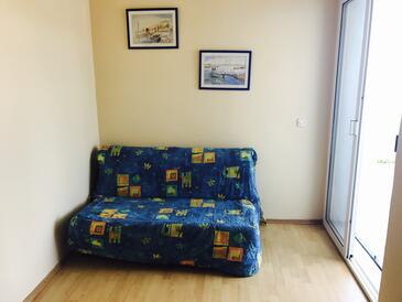 Appartamento può accogliere 5 ospiti. I letti sono disposti nelle camere da letto che sono 2, e nella camera di soggiorno, su 59m2. Gli ospiti hanno a disposizione il proprio terrazzo per godere nelle calde serate estive. Dall'appartamento si gode di una vista sul mare. Si può preparare il cibo utilizzando il barbecue comune. Nell'unità di alloggio si possono portare gli animali domestici con un pagamento supplementare. Arrivati nell'unità d'alloggio i clienti devono pagare un deposito (il prezzo è indicato sul sito).