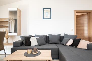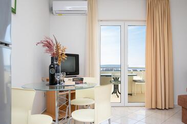 Appartamento può accogliere 4 ospiti. I letti sono disposti nelle camere da letto che sono 1, e nella camera di soggiorno, su 45m2. Gli ospiti hanno a disposizione il proprio terrazzo per godere nelle calde serate estive. Dall'appartamento si gode di una vista sul mare. Si può preparare il cibo utilizzando il barbecue comune. Durante il soggiorno gli ospiti possono utilizzare la piscina comune.