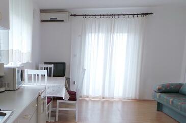 Appartamento può accogliere 8 ospiti. I letti sono disposti nelle camere da letto che sono 3, su 83m2. Gli ospiti hanno a disposizione il proprio terrazzo per godere nelle calde serate estive. Dall'appartamento si gode di una vista sul mare. Si può preparare il cibo utilizzando il barbecue comune. Nell'unità di alloggio si possono portare gli animali domestici con un pagamento supplementare.
