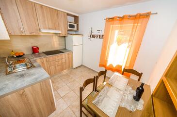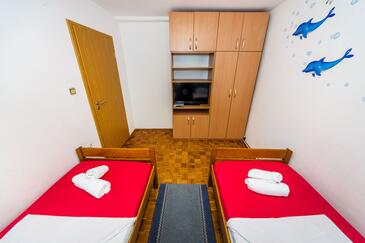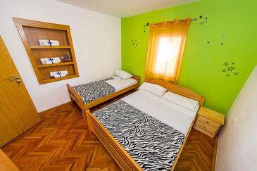 Appartamento può accogliere 8 ospiti. I letti sono disposti nelle camere da letto che sono 3, su 60m2. Gli ospiti hanno a disposizione il proprio terrazzo per godere nelle calde serate estive. Si può preparare il cibo utilizzando il barbecue comune. Nell'unità di alloggio si possono portare gli animali domestici con un pagamento supplementare.