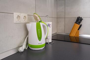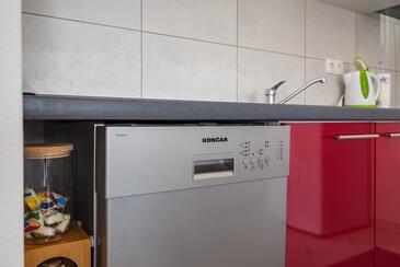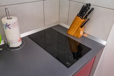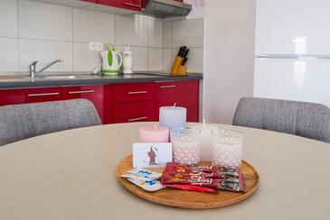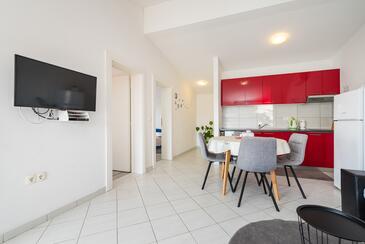 Appartamento può accogliere 4 ospiti. I letti sono disposti nelle camere da letto che sono 2, su 43m2. Gli ospiti hanno a disposizione il proprio terrazzo per godere nelle calde serate estive. Si può preparare il cibo utilizzando il barbecue comune.