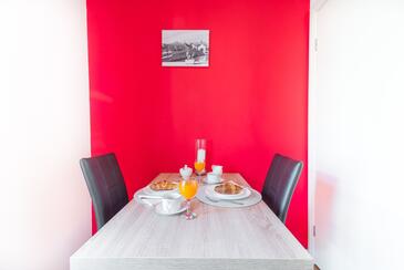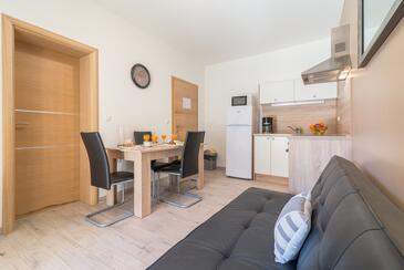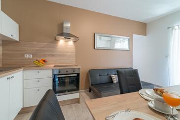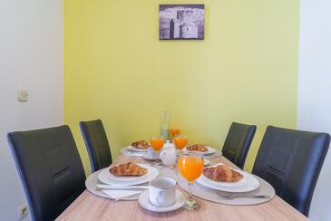 Appartamento può accogliere 4 ospiti. I letti sono disposti nelle camere da letto che sono 2, su 42m2. Gli ospiti hanno a disposizione il proprio terrazzo per godere nelle calde serate estive. Si può preparare il cibo utilizzando il barbecue comune.