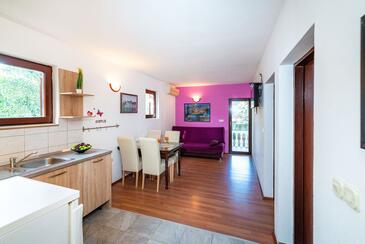 Appartamento può accogliere 5 ospiti. I letti sono disposti nelle camere da letto che sono 2, e nella sala da pranzo, su 47m2. Gli ospiti hanno a disposizione il proprio terrazzo per godere nelle calde serate estive. Si può preparare il cibo utilizzando il barbecue comune. Nell'unità di alloggio si possono portare gli animali domestici con un pagamento supplementare. Altri clienti o proprietari passano per terrazzo dell'unità d'alloggio prenotata.