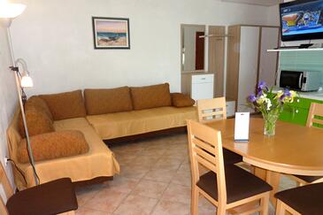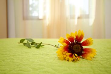 Appartamento può accogliere 12 ospiti. I letti sono disposti nelle camere da letto che sono 6, su 144m2. Gli ospiti hanno a disposizione il proprio terrazzo per godere nelle calde serate estive. Dall'appartamento si gode di una vista sul mare. Si può preparare il cibo utilizzando il barbecue comune. Durante il soggiorno gli ospiti possono utilizzare la piscina comune.