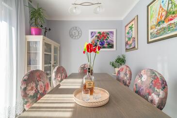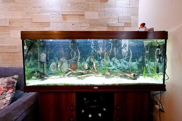 Casa può accogliere 8 ospiti. I letti sono disposti nelle camere da letto che sono 3, e nella camera di soggiorno, su 86m2. Gli ospiti hanno a disposizione il proprio terrazzo per godere nelle calde serate estive. Per il piacere totale e il relax c'è il barbecue privato solo per gli ospiti di quest'alloggio. Durante il soggiorno gli ospiti si possono rilassare nella piscina privata. Le stanze dell'unità d'alloggio non sono connesse in un insieme. Arrivati nell'unità d'alloggio i clienti devono pagare un deposito (il prezzo è indicato sul sito).