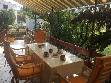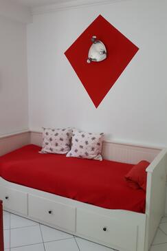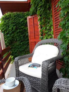 Appartamento può accogliere 6 ospiti. I letti sono disposti nelle camere da letto che sono 3, su 54m2. Gli ospiti hanno a disposizione il proprio terrazzo per godere nelle calde serate estive. Si può preparare il cibo utilizzando il barbecue comune. Nell'unità di alloggio si possono portare gli animali domestici con un pagamento supplementare.