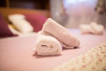 Appartamento può accogliere 4 ospiti. I letti sono disposti nelle camere da letto che sono 2, su 51m2. Gli ospiti hanno a disposizione il proprio balcone per godere delle calde serate estive. Dall'appartamento si gode di una vista sul mare. Si può preparare il cibo utilizzando il barbecue comune. Nell'unità di alloggio si possono portare gli animali domestici con un pagamento supplementare.