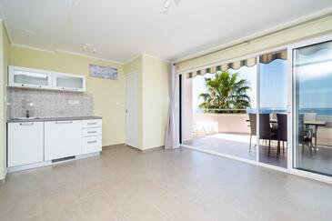 Appartamento può accogliere 4 ospiti. I letti sono disposti nelle camere da letto che sono 1, e nella camera di soggiorno, su 44m2. Gli ospiti hanno a disposizione il proprio terrazzo per godere nelle calde serate estive. Dall'appartamento si gode di una vista sul mare. Si può preparare il cibo utilizzando il barbecue comune.