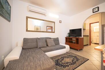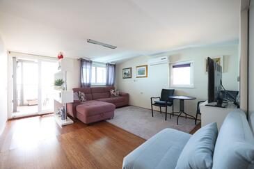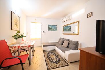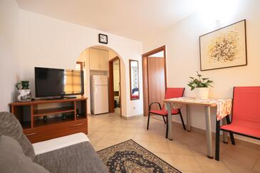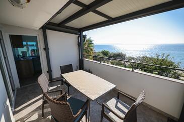 Appartamento può accogliere 5 ospiti. I letti sono disposti nelle camere da letto che sono 2, e nella camera di soggiorno, su 43m2. Gli ospiti hanno a disposizione il proprio terrazzo per godere nelle calde serate estive. Dall'appartamento si gode di una vista sul mare. Si può preparare il cibo utilizzando il barbecue comune.