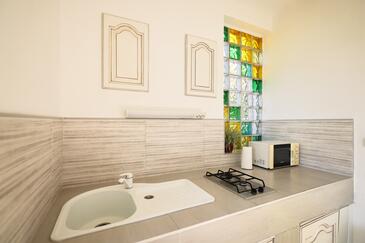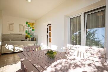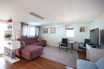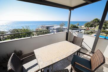 Appartamento può accogliere 5 ospiti. I letti sono disposti nelle camere da letto che sono 2, e nella camera di soggiorno, su 43m2. Gli ospiti hanno a disposizione il proprio terrazzo per godere nelle calde serate estive. Dall'appartamento si gode di una vista sul mare. Si può preparare il cibo utilizzando il barbecue comune.