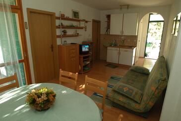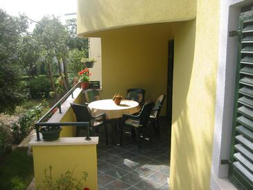 Appartamento può accogliere 6 ospiti. I letti sono disposti nelle camere da letto che sono 2, e nella camera di soggiorno, su 49m2. Gli ospiti hanno a disposizione il proprio terrazzo per godere nelle calde serate estive. Dall'appartamento si gode di una vista sul mare. Si può preparare il cibo utilizzando il barbecue comune.