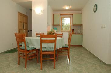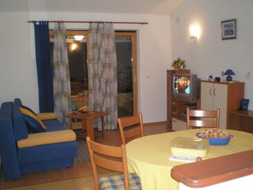 Appartamento può accogliere 6 ospiti. I letti sono disposti nelle camere da letto che sono 2, e nella camera di soggiorno, su 49m2. Gli ospiti hanno a disposizione il proprio terrazzo per godere nelle calde serate estive. Dall'appartamento si gode di una vista sul mare. Si può preparare il cibo utilizzando il barbecue comune.