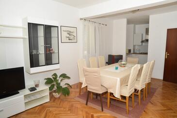 Appartamento può accogliere 8 ospiti. I letti sono disposti nelle camere da letto che sono 3, e nella camera di soggiorno, su 102m2. Gli ospiti hanno a disposizione il proprio terrazzo per godere nelle calde serate estive. Per il piacere totale e il relax c'è il barbecue privato solo per gli ospiti di quest'alloggio. Durante il soggiorno gli ospiti possono utilizzare la piscina comune.