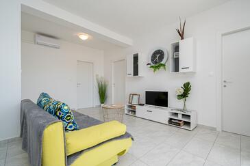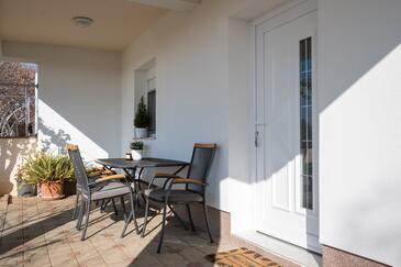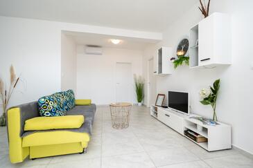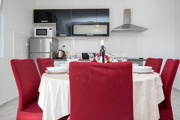 Appartamento può accogliere 6 ospiti. I letti sono disposti nelle camere da letto che sono 2, e nella camera di soggiorno, su 65m2. Gli ospiti hanno a disposizione il proprio terrazzo per godere nelle calde serate estive. Si può preparare il cibo utilizzando il barbecue comune. Nell'unità di alloggio si possono portare gli animali domestici con un pagamento supplementare.