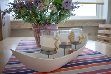 Appartamento può accogliere 6 ospiti. I letti sono disposti nelle camere da letto che sono 2, e nella camera di soggiorno, su 60m2. Si può preparare il cibo utilizzando il barbecue comune. L'unità di alloggio prenotata non ha ne balcone ne terrazzo.