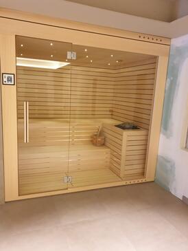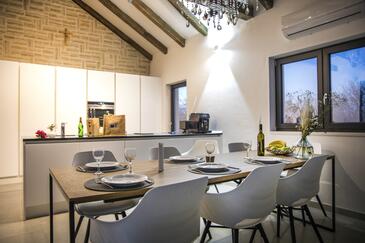 Casa può accogliere 8 ospiti. I letti sono disposti nelle camere da letto che sono 3, e nella camera di soggiorno, su 115m2. Gli ospiti hanno a disposizione il proprio terrazzo per godere nelle calde serate estive. Per il piacere totale e il relax c'è il barbecue privato solo per gli ospiti di quest'alloggio. Durante il soggiorno gli ospiti si possono rilassare nella piscina privata. Le stanze dell'unità d'alloggio non sono connesse in un insieme. L'unità d'alloggio ha delle stanze separate dal resto dell'unità.