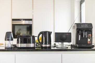 Casa può accogliere 8 ospiti. I letti sono disposti nelle camere da letto che sono 3, e nella camera di soggiorno, su 115m2. Gli ospiti hanno a disposizione il proprio terrazzo per godere nelle calde serate estive. Per il piacere totale e il relax c'è il barbecue privato solo per gli ospiti di quest'alloggio. Durante il soggiorno gli ospiti si possono rilassare nella piscina privata. Le stanze dell'unità d'alloggio non sono connesse in un insieme. L'unità d'alloggio ha delle stanze separate dal resto dell'unità.