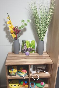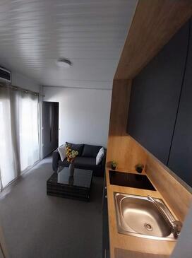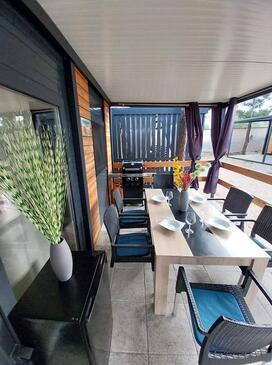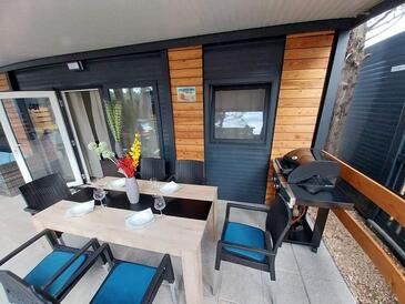 Casa può accogliere 6 ospiti. I letti sono disposti nelle camere da letto che sono 2, e nella camera di soggiorno, su 24m2. Gli ospiti hanno a disposizione il proprio terrazzo per godere nelle calde serate estive. Si può preparare il cibo utilizzando il barbecue comune.
