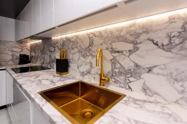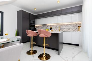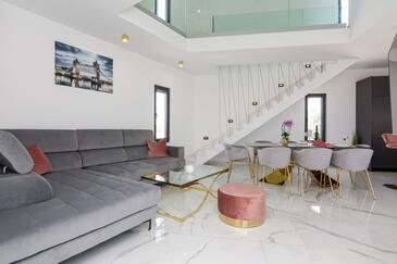 Casa può accogliere 8 ospiti. I letti sono disposti nelle camere da letto che sono 4, su 109m2. Gli ospiti hanno a disposizione il proprio terrazzo per godere nelle calde serate estive. Dalla casa si gode di una vista sul mare. Per il piacere totale e il relax c'è il barbecue privato solo per gli ospiti di quest'alloggio.
