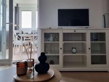 Appartamento può accogliere 4 ospiti. I letti sono disposti nelle camere da letto che sono 2, su 57m2. Gli ospiti hanno a disposizione il proprio balcone per godere delle calde serate estive. Dall'appartamento si gode di una vista sul mare.