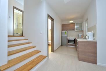 Appartamento può accogliere 5 ospiti. I letti sono disposti nelle camere da letto che sono 2, e nella camera di soggiorno, su 61m2. Gli ospiti hanno a disposizione il proprio terrazzo per godere nelle calde serate estive. Per il piacere totale e il relax c'è il barbecue privato solo per gli ospiti di quest'alloggio. Nell'unità di alloggio si possono portare gli animali domestici con un pagamento supplementare.