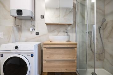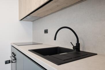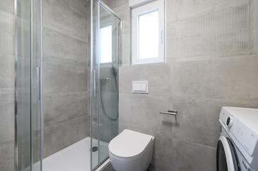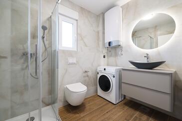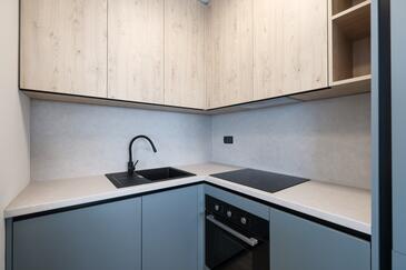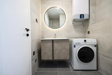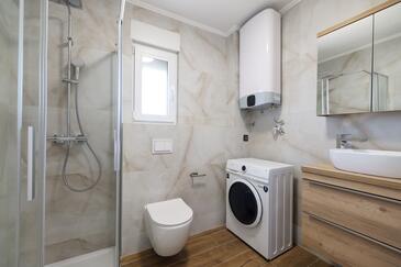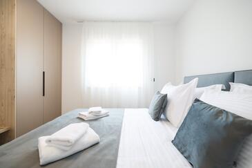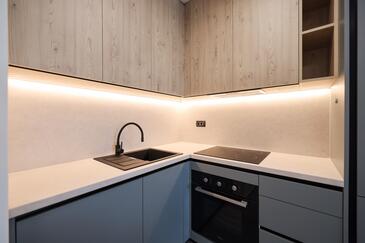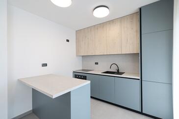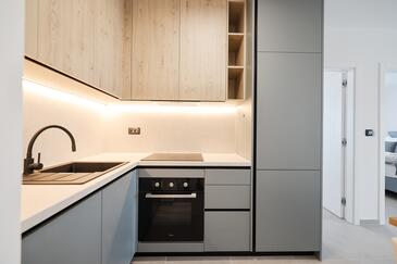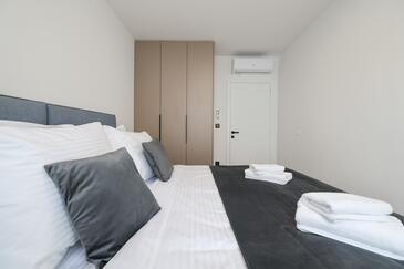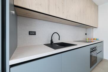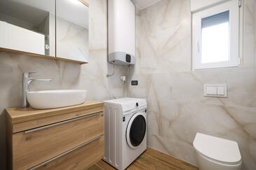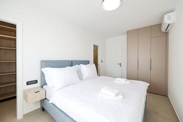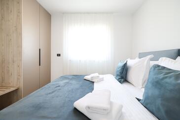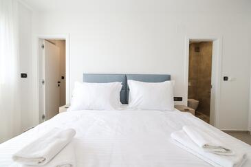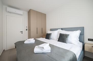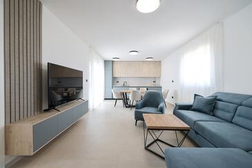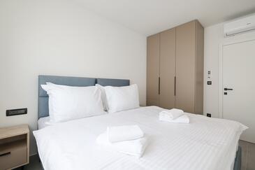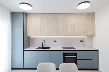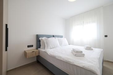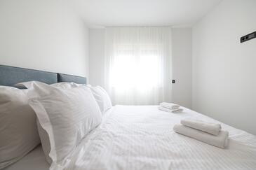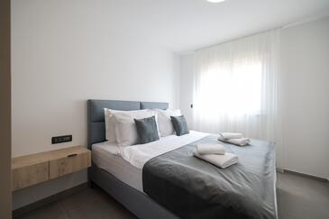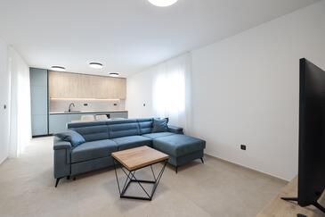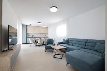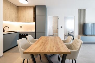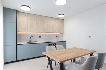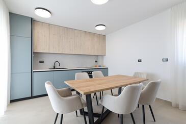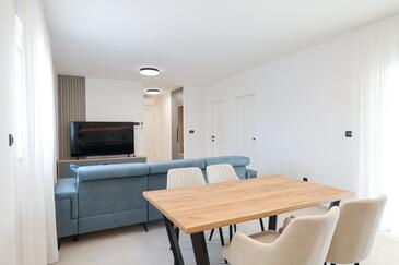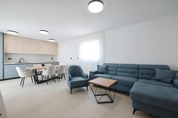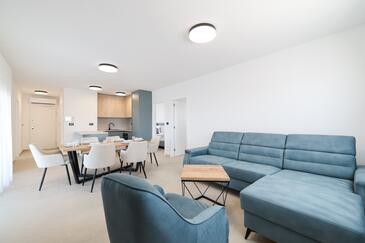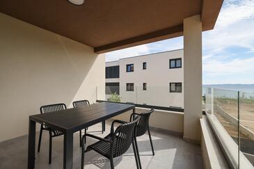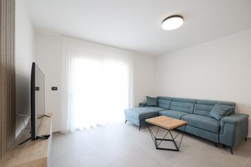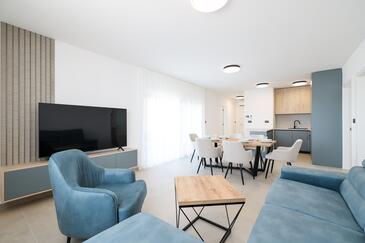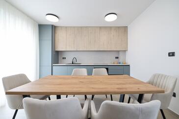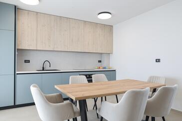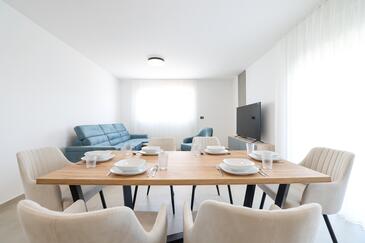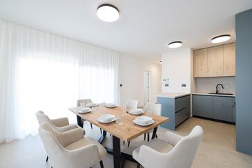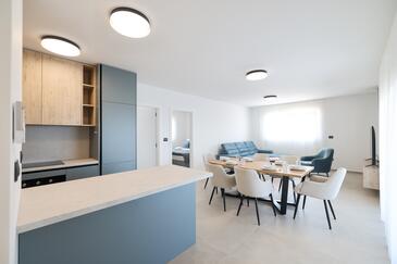 Appartamento può accogliere 7 ospiti. I letti sono disposti nelle camere da letto che sono 3, e nella camera di soggiorno, su 77m2. Gli ospiti hanno a disposizione il proprio terrazzo per godere nelle calde serate estive. Dall'appartamento si gode di una vista sul mare. Si può preparare il cibo utilizzando il barbecue comune.