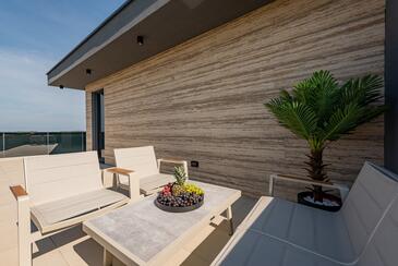 Casa può accogliere 10 ospiti. I letti sono disposti nelle camere da letto che sono 5, su 182m2. Gli ospiti hanno a disposizione il proprio terrazzo per godere nelle calde serate estive. Dalla casa si gode di una vista sul mare. Per il piacere totale e il relax c'è il barbecue privato solo per gli ospiti di quest'alloggio. Durante il soggiorno gli ospiti si possono rilassare nella piscina privata.