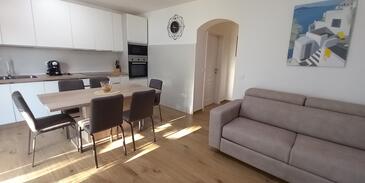 Appartamento può accogliere 4 ospiti. I letti sono disposti nelle camere da letto che sono 2, su 56m2. Gli ospiti hanno a disposizione il proprio terrazzo per godere nelle calde serate estive. Si può preparare il cibo utilizzando il barbecue comune. Durante il soggiorno gli ospiti si possono rilassare nella piscina privata.