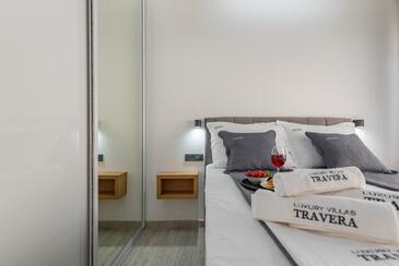 Casa può accogliere 10 ospiti. I letti sono disposti nelle camere da letto che sono 5, su 240m2. Gli ospiti hanno a disposizione il proprio terrazzo per godere nelle calde serate estive. Dalla casa si gode di una vista sul mare. Per il piacere totale e il relax c'è il barbecue privato solo per gli ospiti di quest'alloggio. Durante il soggiorno gli ospiti possono utilizzare la piscina comune.