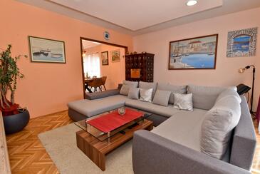 Casa può accogliere 6 ospiti. I letti sono disposti nelle camere da letto che sono 3, su 92m2. Gli ospiti hanno a disposizione il proprio terrazzo per godere nelle calde serate estive. Dalla casa si gode di una vista sul mare. Si può preparare il cibo utilizzando il barbecue comune. Arrivati nell'unità d'alloggio i clienti devono pagare un deposito (il prezzo è indicato sul sito).