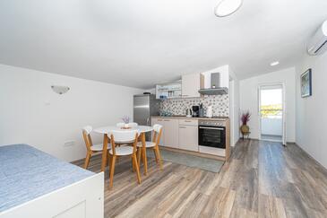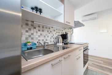 Appartamento può accogliere 4 ospiti. I letti sono disposti nelle camere da letto che sono 2, su 56m2. Gli ospiti hanno a disposizione il proprio balcone per godere delle calde serate estive. Dall'appartamento si gode di una vista sul mare.