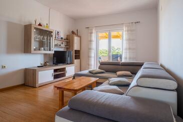 Appartamento può accogliere 8 ospiti. I letti sono disposti nelle camere da letto che sono 3, su 100m2. Gli ospiti hanno a disposizione il proprio balcone per godere delle calde serate estive. Si può preparare il cibo utilizzando il barbecue comune. Durante il soggiorno gli ospiti possono utilizzare la piscina comune.